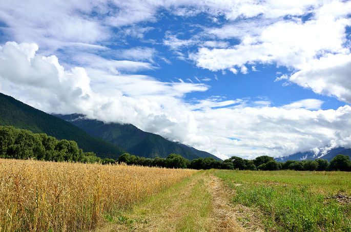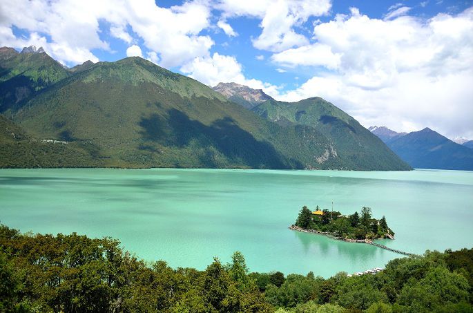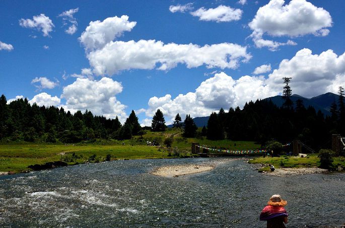 米林海拔2960米,高山流水,蓝天白云,植被茂盛,气候怡人,处处皆是迷人的风景。