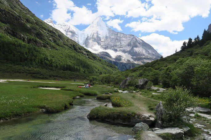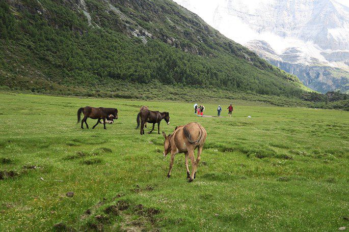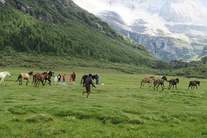 海拔4000多米,正常人走动起来也总是气喘吁吁。如果节奏慢的话是很难一天内把亚丁景区玩完的。实际上,我们的团队里老小只在洛绒牛场走走,除我支身一人到达雪山脚下,牛奶海和五色海没来得及玩就匆匆撤回山下。驴友说真的美醉了。。。