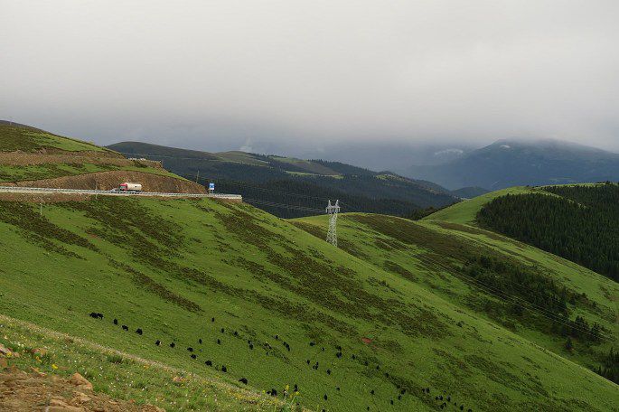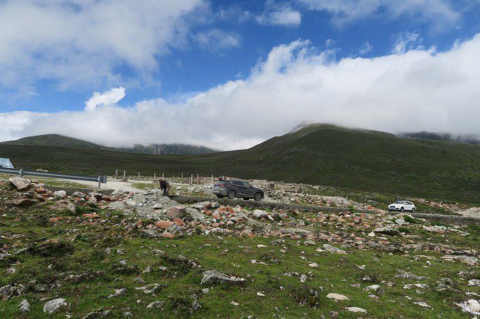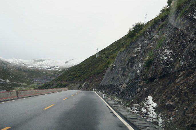 国道318线雅江-新都桥-康定-海螺沟路上 部分路段冰雪花覆盖,室外只有几度。。。