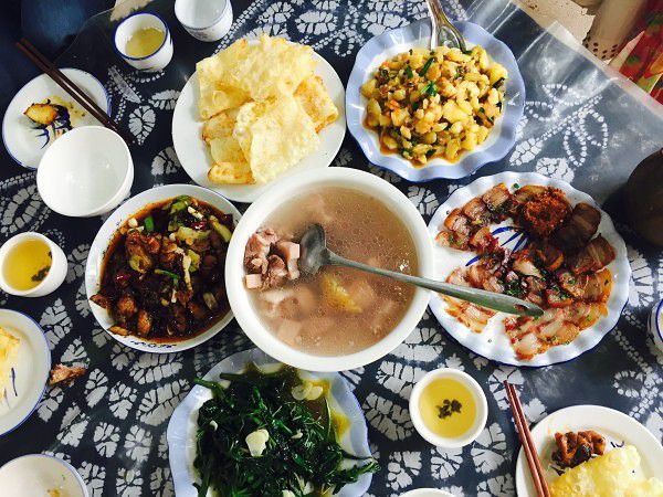 在双廊直接大众点评,找了一家评价数量多的分数高的。推荐双廊古渔香饭店(人均47),五花肉黄焖鸡什么的都很好吃,只不过菜的味道有一点点重,青菜是必点的,做法几乎都是放点蒜爆炒,保留了青菜原本的味道。