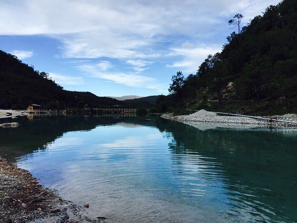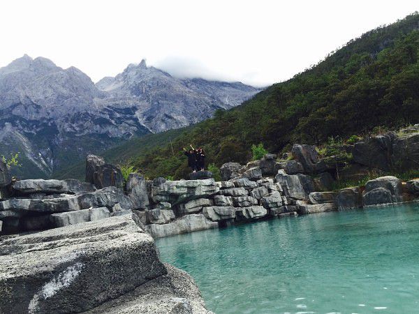 前往丽江古城之前我们先到了蓝月谷。水很清澈,虽然不能与九寨沟相比,但身后的玉龙雪山的雄伟增添了许多色彩。