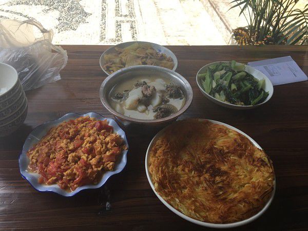 在丽江几天一直住在自由生活驿站,木府旁的一家客栈,离闹市区有段距离,所以相对安静,老板和伙计人都很好。最后一天掌柜阿飞还给我们做了一顿送行饭。