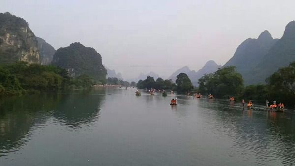 桂林阳朔的山水漂亮确实是漂亮,但是大同小异。十里画廊一路的风景也大同小异。四个景点我们也只去了一家地下溶洞而已。