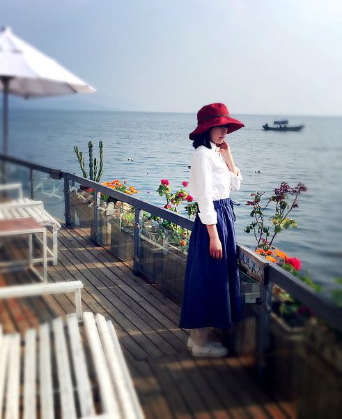 第三天原本约了十点的车去丽江,收拾好东西出门的时候非常惊喜,盼了两天的蓝天终于出现了,海地生活就在边上,立马换衣服去凹造型