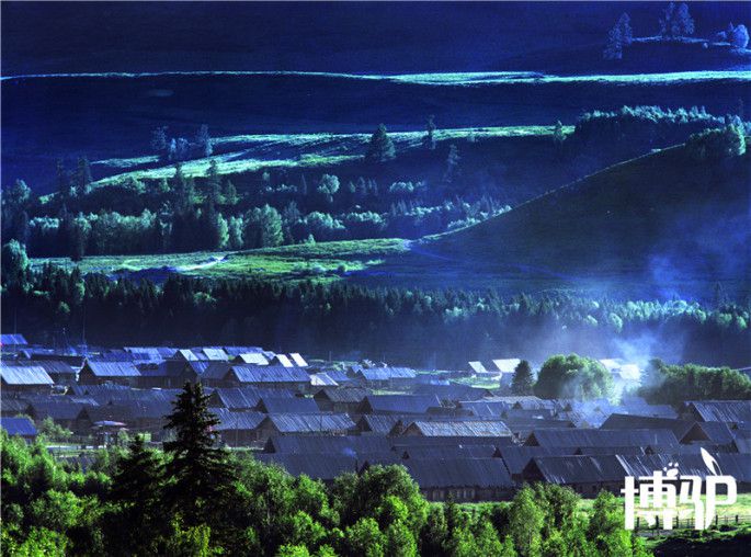 禾木村坐落在一片草原之中,保留着最完整的民族传统,当地居民的房屋散落在草原之上,房屋都很有特色,每家的门都是朝东开的,远远望去,仿佛像是一座迷宫,又像是一幅浸染了翠色的水墨画。