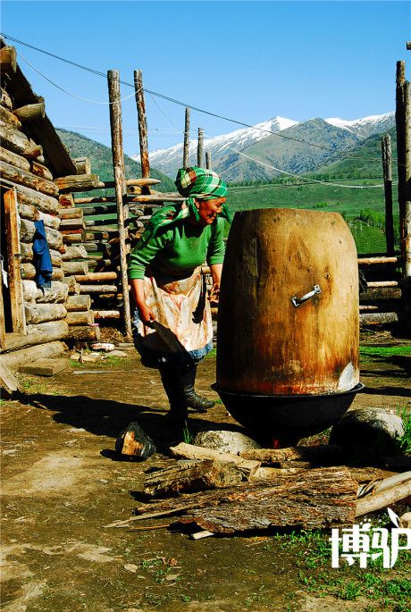 这是当地人在烧奶酒,这种饮品有酒的刚烈,又透着一股清雅的奶香,味道并不似白酒那般浓郁醇厚,但一种淡淡的温度、淡淡的黏度在口里,与那奇特美味综合在一起,韵味绵长,沁入心脾。据说禾木的奶酒在元朝时还是宫廷御酒。
