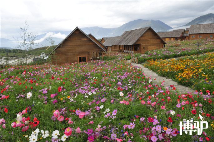 天色并不明朗,但是这漫山遍野的格桑花却开得热热闹闹,叫人也不禁感到一阵轻松愉悦。格桑花代表着勤劳的人们,幸福就寄寓在每天踏踏实实的生活之中。