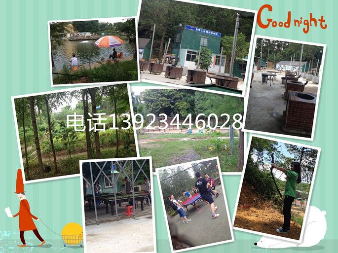 烧烤、野炊、射箭比赛、桌球、乒乓球、羽毛球、卡拉OK、钓鱼、拔河、踢毽子、秋千、吊床、高空拓展(空中单杠、空中断桥等)、地面拓展项目(水果迷宫、不倒森林、车轮战等)、汗蒸馆。