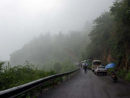 真是出师不利,旅行车开到离景点三分之一路程的地方,前面有一部装水泥的货车失控撞山翻车,当场死了二人。倾倒的水泥和出事车阻住了道路,要清理出可以通过车辆的通道要几个小时,前方堵住长长的一行待通过的车流。