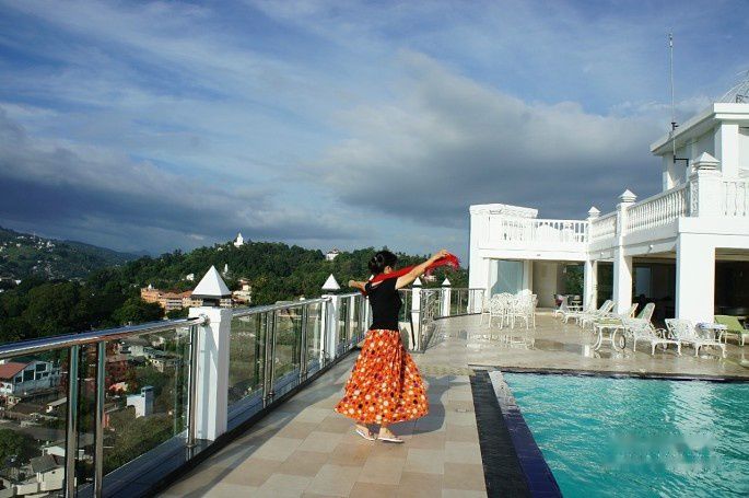 第二天一大早,米高爬到酒店顶层,湛蓝的游泳池静静地置于顶楼之上,米高站在泳池边俯瞰四周,群山环抱中的康提城格外漂亮,景色尽收眼底。