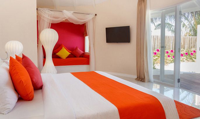 Coco岛的沙屋只要一种房型,188平超大的独栋别墅,我们一进房间,完整陶醉于这异国的豪华气氛,房间内弥散一股当地特殊香料的幽香,整个装修低调豪华风,复古的木质家具,超大的双人浴缸,配着蓝色魅惑的灯光,还有酒店为蜜月情侣准备的香槟水果和用心铺的honeymoon大床。房间内有咖啡机能够本人做咖啡,还有免费的花茶能够冲泡,并每天赠送一瓶1.5L的饮用水。冰箱里一切的饮料都是需付费的了。
