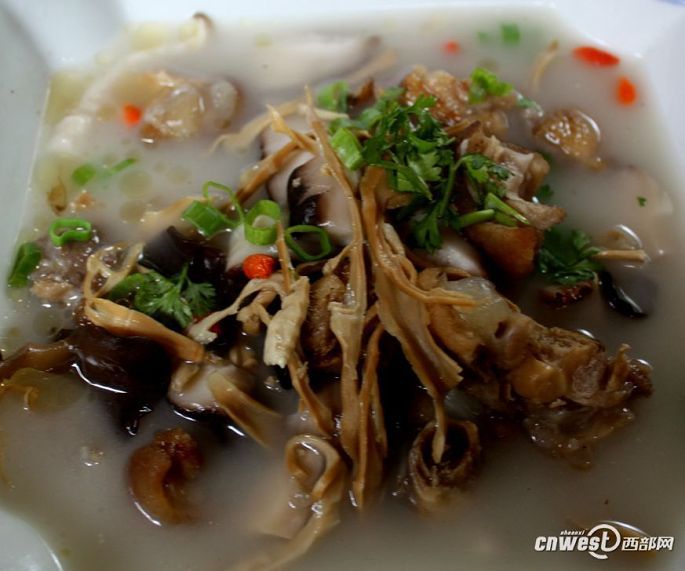 是的,你没有看错,下图那个绿绿的真的是豆腐,而且是用树叶做成的豆腐,当地称为神豆腐。