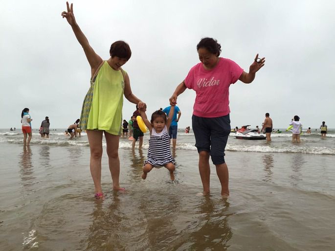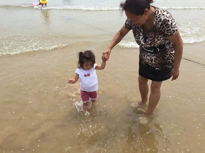 言归正传,还是继续说玩吧,我们这次出游的目的很明确就是休闲,所以第一天中午吃晚饭,就午休,下午4点左右,天不太热,海水又晒热之后,一家人背着装备不紧不慢的去海边,和日照的大海有了紧密接触。