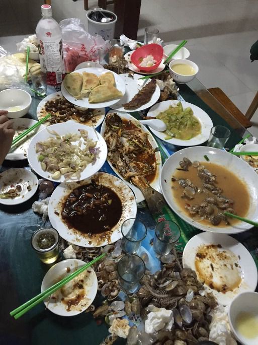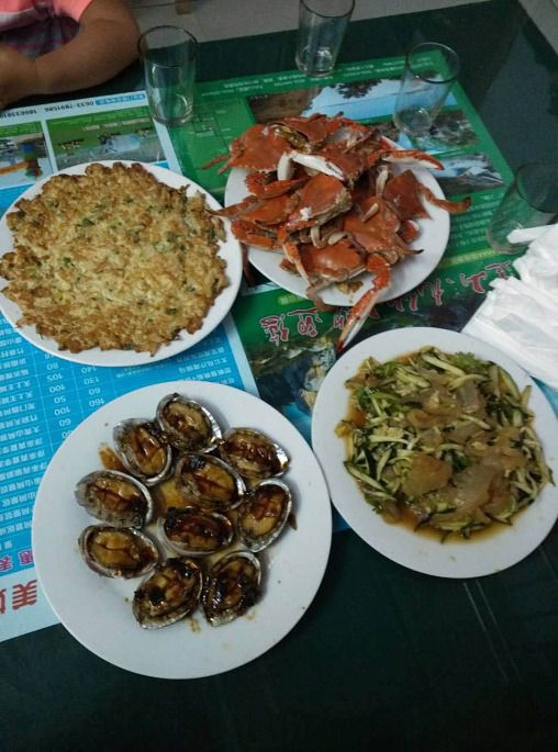 第三天早餐在渔家鱼早餐,馍菜汤!中午想着尝尝外面饭店菜品如何,于是乎找个口碑不错的,我页忘记叫啥名字的饭店,鸦*鱼,大海螺,蚬子,青菜、鲅鱼饺子……基本都是白灼,味道一般,价格不高。所以,全家决定晚上还是在渔家吃,比较下来渔家大姐做饭真的好吃,最后一顿饭了,吃的口味重点儿,黄花鱼红烧,鲍鱼,生蚝,香螺辣的很好吃,还有一如既往好吃的炸子板……超满足的!!!!老板娘手艺杠杠的,比大饭店做的都好吃!!!!赞!赞!赞!!