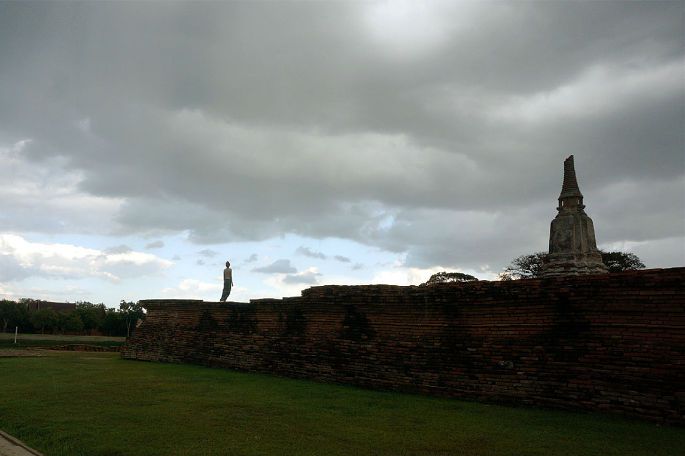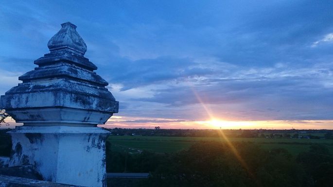 玛哈泰附近的寺庙大概都差不多风格,就选了3个不同看看,不巧的是有两个都还蛮远,因为我要自行车去。。。先去了吴哥风格的wat wattanaram,寺庙较远时间也不早了,所以没有几个人,一进去一种强大的静谧感,只有鸟叫的声音,心里还是有点小震撼的。天阴阴的,夕阳在天的另一头,等了一会,没把夕阳等来,等来了大雨,哎呀我去。。