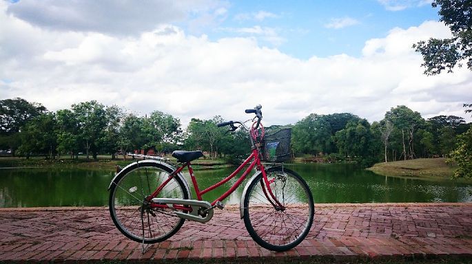 租了一辆自行车,是店门口出租的,压了护照付了租金,晚上9点以前还车。