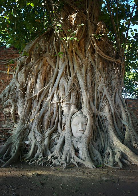 第二天一早6点左右就起来了,看不到夕阳西下,就看日头升起吧!从guest house走大约5分钟就到wat maha that,“永恒的微笑-树抱佛头”就在这里。