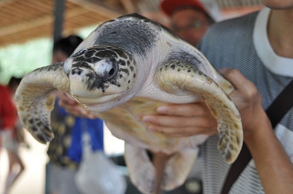 南湾海滩的海水比差,可能这边靠近生活区,污染比较厉害。但这边是主要的海上活动地点,海边停靠着很多小游艇,可以玩拖拽伞、水上摩托艇、香蕉船、潜水等 活动。这里离我们的宾馆就隔着一条马路。早上吃了饭,过了一会导游就带我们去参加海上项目。他带去的地方比较黑,价钱很高,拖拽伞每人$20,香蕉船每 人$15;大家看了后都没有了兴致。但这是第一天,有3个小时,又不熟悉,还是做点什么事吧。于是大家一致决定去一趟海龟岛。每人$20。我们有20人, 分坐两条船;沿着海边开了20分钟左右,就到了岛上。这是很小的一个岛,上面有海龟,大蟒蛇,蜥蜴,大鸟,雕等动物。大家排队和这些可爱的动物照相。在岛 上大家又照了第二张合影,是抱着蟒蛇照的。