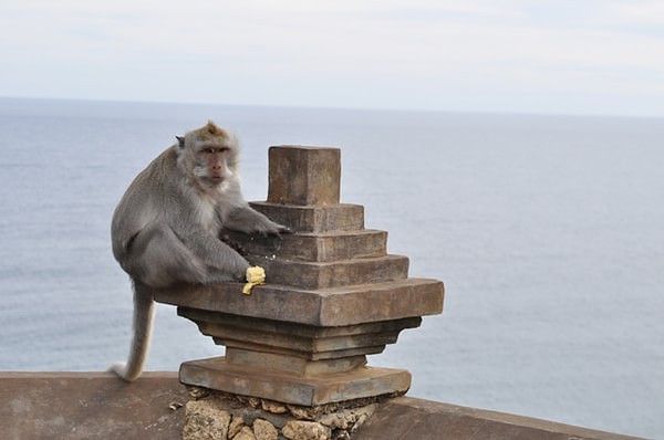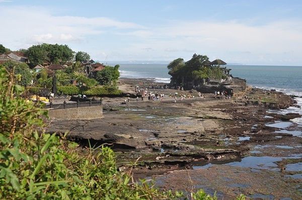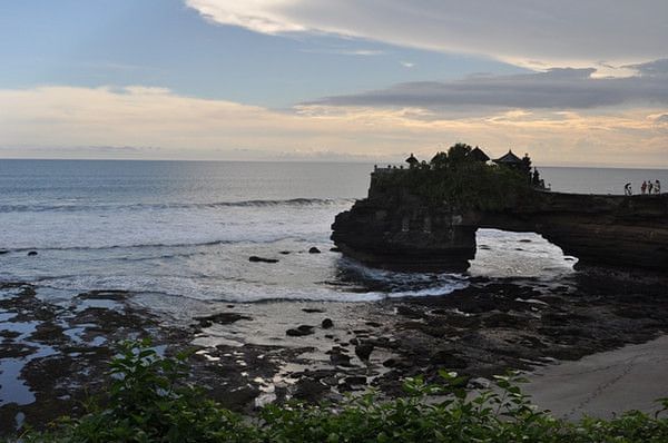 下午去参观了最著名的海神庙(Tanah Lot),这个庙建於海岸边高起的珊瑚礁岩上,相当壮观。庙离岸边大概100米左右,涨潮时,此庙四周环绕海水,和陆地完全隔离。落潮时方可以相通。对岸有小亭可以眺望日落景色,景色唯美动人,海神庙建于十六世纪,祭祀海神。海蛇是寺庙的守护神。庙建在岩石上面,不大,一般上不去,海神庙一带的海岸很美,大致有三个海湾,突出来的岸上都建了小庙,有一处突出的岩石特别象象鼻山。好多人在退 潮后的海岸边玩耍,照相,还有的跑下去游泳,这边没有什么沙滩。最后一个海湾的山顶上是餐厅,想象一下吧,坐在海岸边,一边远眺海神庙(有点远,看不大清 楚),一边是梯田和小瀑布;看着夕阳听着涛声。哎,真不想走了。我们有个团员回去后就很纠结,非要再来一趟,说要到海滩上拾贝壳、玩海水,甚至不惜放弃和 大家一起去看火山。最后我只好行使团长权利,逼其就范。其实我也很想再去一趟的。随团的问题就是,你没办法按自己的意愿行事,永远都在别人画的圈圈里赶 路,赶路,心态好的人很亢奋,心态不好的人就会说真他妈没意思。花的都是自己的钱,不要和自己过不去。