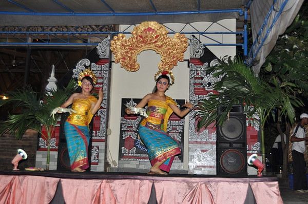 下 一站是金巴兰海滩(Kimbalan)。那里的海滩真是美啊,沙子很白,海滩很长,水也非常清澈。最尽头就是巴里库塔的机场,常常看见飞机起落。大家在海 边使劲照相,玩海水。有位老兄跑下去游泳。浪慢慢大了起来。我正在照相,突然听见一片喧哗,过去一看,那位下海的正手忙脚乱地在海水里找东西。原来他竟然 带着眼镜下的海。真服了他了,比我还牛。天慢慢暗下来了,大家就坐在海滩上吃海鲜烧烤,看着夕阳染红了 远处的天空。还有印尼的本地舞蹈。跳完后舞者站在台上给大家合影。