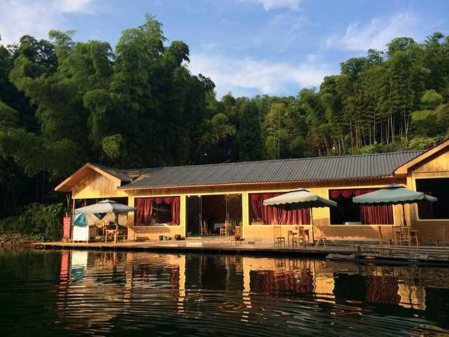 进入山区,整个山路平坦而干净,两边的翠竹看着也那么舒心,四川旅游业真的不亏是发展迅速啊! 穿过了百里竹生态隧道,算是进入竹海了,很快到了竹海景区西大门,下车买票……继续前行,到达之前联系好的农家乐,结果我们3间房子没有安排在一起,而且有2间是在加盖的小三层,队友有些不爽,想更换地方。后来,得知平时周日到周四,住房宽裕,而且价钱便宜,标间120元左右一天,周末价钱相对会高20—50不等。在农家乐点菜吃饭咯,到了这肯定要先吃点特色美食,竹花、竹荪、竹蛋、新笋……平常大家只能吃干的,但是在竹海却可以享受新鲜的,口感不错。7个人吃了8个菜,人均60元。