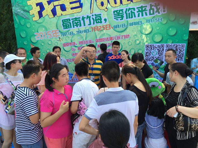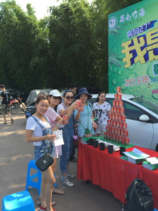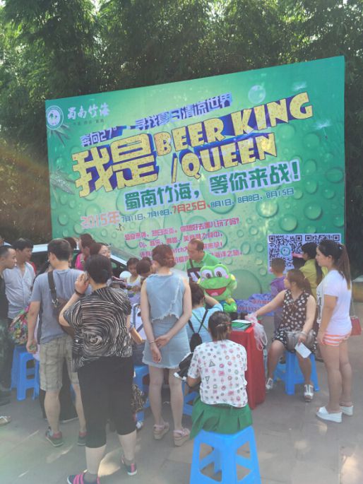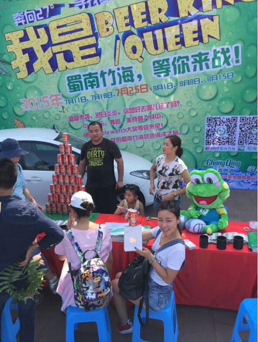 来到了七彩飞瀑,看见了啤酒堆成的金字塔,出于口渴和好奇,我也凑近去看看,结果是蜀南竹海在周末设定的骰王争霸赛。游戏规则:凭门票参与活动,只取报名的前48名,活动为累计赛制,一个人1个骰盅,一个人丢3次,累计之和做比较。
