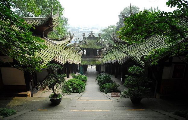 都江堰,青城山。一个是人类智慧的伟大创造,一个是造物主的神来之笔。以流水的灵动,蜀山的空幽,体现了自然、生命和谐的道家哲学,以一种顺其自然的超然生死观追求和谐的至上境界。幽是青城的极致,也是青城的品相。峰峦,溪谷都掩盖在一片苍翠中,低调淡泊之感;月色湖静静地卧在山坳间,粼粼的波光与岸上碧绿的翠竹,俨然成了一幅俊秀的图画,放佛是青城故意捧出的一道月色,好像大海中的浪花掀起的一只扇贝,贝中含着璀璨的珍珠。行走在山林间,浑身感到舒爽,湿润的新绿中,鸟鸣更加清脆动听,空中似乎要飘落雨滴,而这一的情境,让人不忍撑伞,在如此的清幽之地,巴不得满身侵染,恨不得寄居其间。于是青城山接待芸芸众生的游览和瞻仰,以她的灵秀幽静,带着天人之道的凛然,净化俗世人们的疲惫心灵;都江堰以水的轻柔、青城山用山的硬朗,阐释了深邃的道家文化中的“阴阳”和“虚实”之道。山水有道,都江堰用自己知天命的闲适生活态度诠释了最朴实的生活哲理,大千世界,万事万物,皆寻道而生,寻道而存。