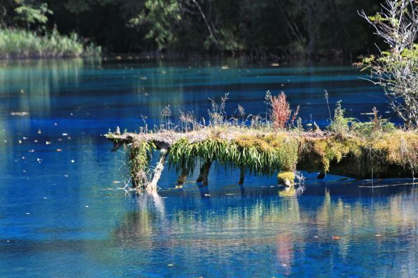地图上的季节海随时间不同内容不一样,在9,10月份只有上季节海有水,车上看一下就可以,没必要下车游览。所以五彩池之后就直接坐车到诺日朗中心站吃东西。饭后继续坐车游览树正沟,根据自己兴趣游览犀牛海、老虎海、树正群海、芦苇海、盆景滩等,都值得步行游览。芦苇海是在一片秘密的芦苇丛中间有一条蓝色的河流,非常漂亮,不能错过。慢慢走出来,一天的行程基本结束了。