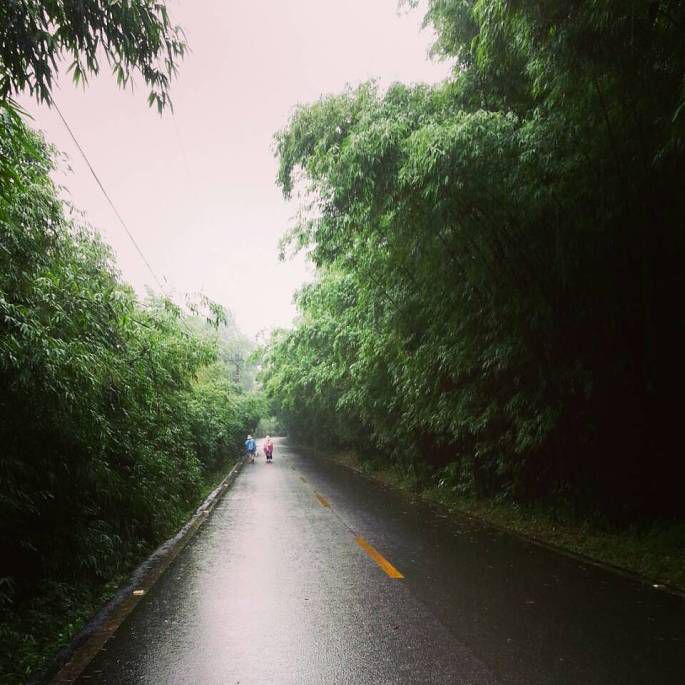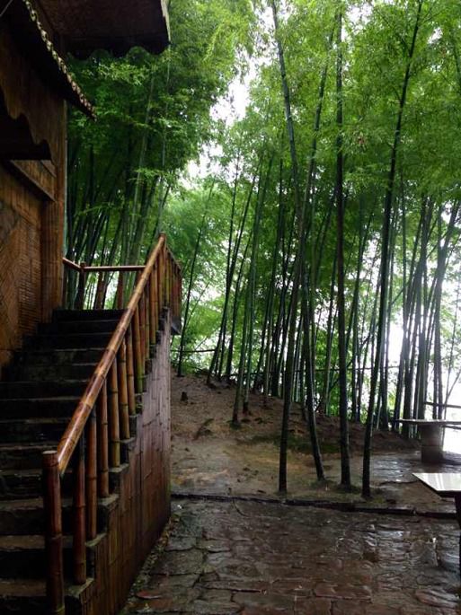 饭后,我们去了两个景点,第一站,翡翠长廊。翡翠长廊作为蜀南竹海宣传画之一,不仅有名,而且是美景,必去之处,也是很多景点必经之路,实际上并不长,约有几百米,路面由天然红砂石铺成,红色的路面与翠绿的竹子相映成趣。很幸运的是晚饭时间道路人少,如果是白天基本上拍出来都是人。雨后,翠绿的竹子,红砂的地面,美!尽情呼吸着雨后林间的空气,湿润而清新。 旁边就是第二站:观海楼。九层高,站在顶层远处竹海全貌尽收眼底,感受雨后微微习风,看着夕阳西下,美啊!而且晚饭后景点人很少,很安静!差不多1个小时就悠玩了2个地方。我们回了农家乐,咨询了老板,建议我们第2天7点半出发,赶人少的时候看景更美。