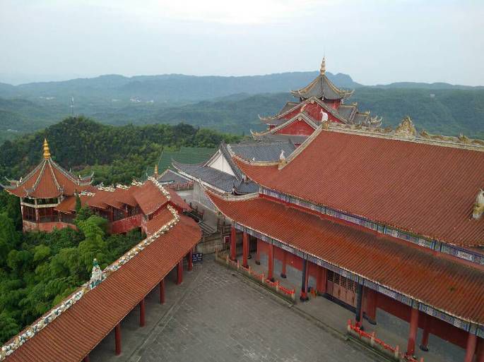 竹海中的最高点除了观海楼,再就应该是龙吟寺的“双子塔”,二者两两相望,双子塔虽是钢筋混凝土建筑,但是双塔一大一小,连通起来还是很好玩。有点可惜的是云海迟迟不退,周围都是白云一样,在空中自由飘荡,也算是一种体会吧。寺庙在无垠的云海的衬托之下,那是相当有韵味的。