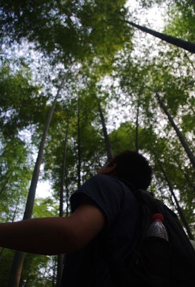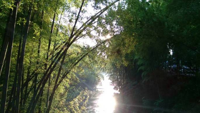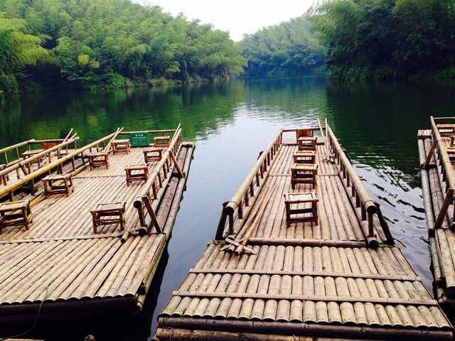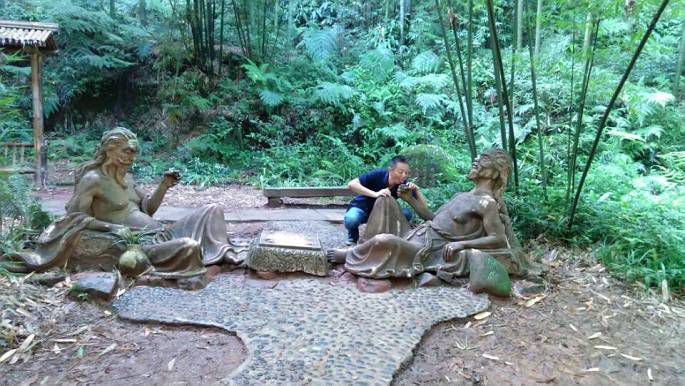 继续下一个景点,第八站:忘忧谷。听着名字还是很有诗意的,楠竹门上有楹联一对:“万竿翠竹扫去滚滚红尘,一溪清流奏出淳淳韶音”。 这个景点也是人最多的,这里竹子长的密集又粗壮,翡翠般的竹林遮天蔽日,整个山谷更显幽深。谷中小溪潺潺,小径弯弯,五叠瀑、珍珠瀑等众多瀑布,我们也许是逛的疲惫了,感觉也就那么一回儿事儿,差不多40分钟就逛完了。