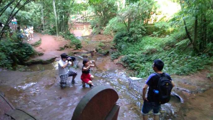 接下来就是第九站了:墨溪。也是我最想去的一个地方,这个地方类似原始森林,因为路途往返六公里,所以旅行团是不会带游客去的,从而游客很少。墨溪的水很清,只是水底石和翡翠长廊的红砂石是同一种,再加上石上生苔,因此远望水色如墨,有石、有阶、有亭、有飞瀑、有空谷。烟雨龙岩竹海瀑布,那种烟雨的感觉很好,烟雨龙岩的刻字几被杂草掩映着,十分神秘,原始森林一般。我们一路走来,只有7名游客,可见有多么静谧了,几乎可以听到自己呼吸。不过墨溪有的路段很滑,还是要注意安全。