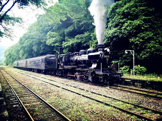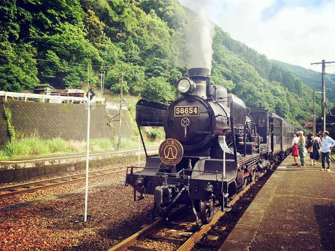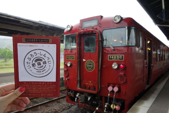 坐在我旁边的一位叔叔是SL人吉号的忠实粉,据说他从今年3-5月,已经乘坐了10次,不为别的,就是因为对它的爱。我问他为什么喜欢这辆车,他挠了挠头,陶醉的看着窗外,说自己也不清楚,也许是车头的设计,也许是沿途的风景,总之就是爱上了。这趟列车每到12月会暂停运行,只有在停运的时候,他会去尝试乘坐其他的列车,而到了每年的3-11月都会坚持乘坐SL人吉。关于它的每一个细节,他都不会错过。哪里有隧道,哪里能看到什么样的景色,甚至走到哪里会碰上哪趟列车他都能脱口而出。