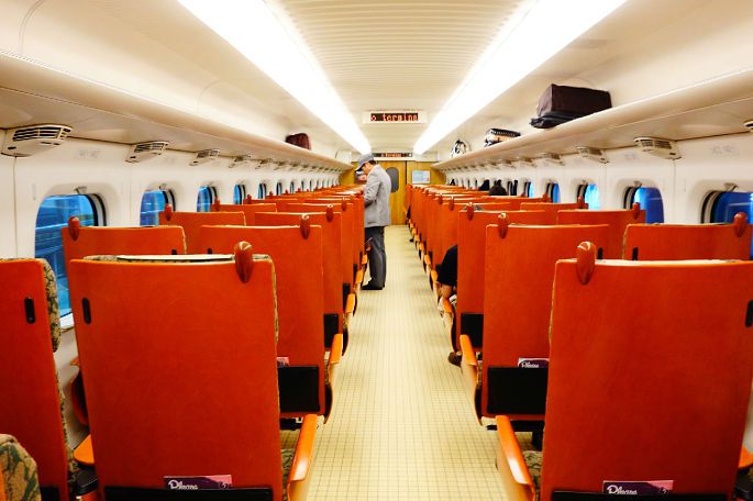 可能是太早的缘故,车上的乘客并不是很多,座位非常宽敞,比国内的高铁要更舒适一些,即使拿着大箱子,放在座位前面也有足够的空间。车上非常干净,木质的座椅靠背和暖色的灯光给人感觉感觉格外温馨。鹿儿岛行虽然是从最北端到最南端的跨越,但是坐新干线全程1个多小时,快的像飞一样。