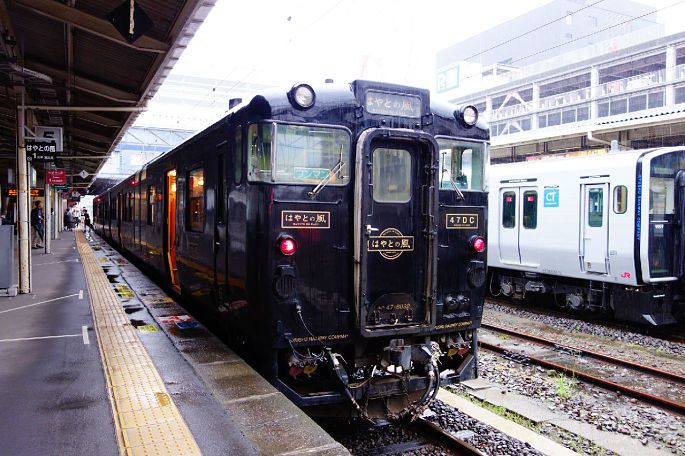 清晨的鹿儿岛,淅淅沥沥的下起了小雨,心中暗叫一声不好,今天是体验观光列车的日子,天气不能这样不给力啊。直到一辆帅气如黑武士般的列车缓缓向我开来,一切烦心都转瞬即逝!这个就是传说中的隼人之风号吗? 太帅了!