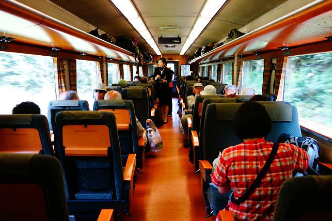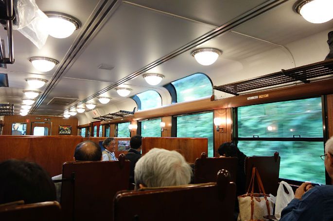 明显能感觉到,SL人吉号的乘客相比刚才都多了许多,几乎满座。车上还看到了许多熟悉的面孔,那些从鹿儿岛中央站开始就一起乘车的人,最后也都出现在了这辆雄伟的SL人吉号上,看来大家都是冲着它来的~