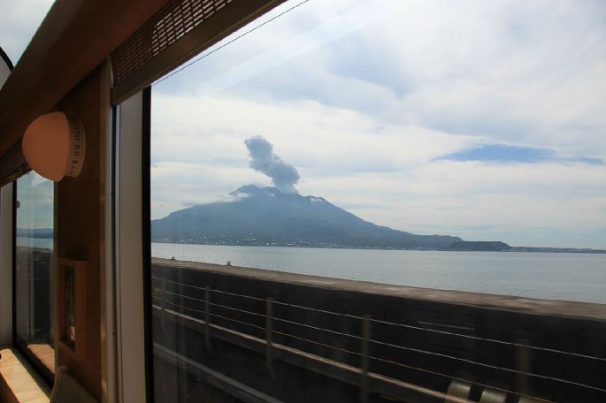 找朋友要到一张隼人之风的车窗风景照,天气好的时候可以直接在列车上一睹樱岛的雄姿。每当看到这张照片我都羡慕忌妒恨,下次一定要再坐一次隼人之风!
