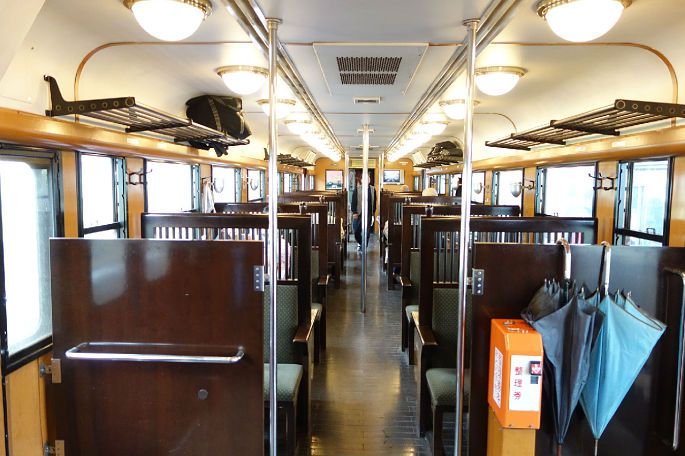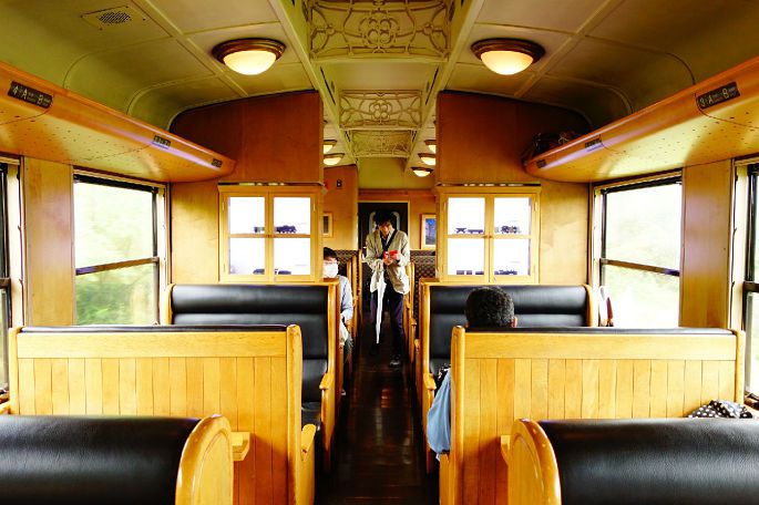 古色古香的内饰结构,沉稳而大气,心中的嘈杂在进入车厢的那一刹那,都会平复下来。伊三郎·新平号一路沿着山路行进,过眼满目皆是绿树丛林,随着列车轰隆的响声,心灵也受到了洗礼。