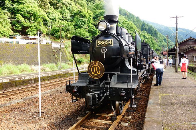 在人吉站下车,在站内的休息室小坐了一会后终于见到了我今天最想体验的列车:SL人吉号,它应该算是日本最古老的现役蒸汽列车了。