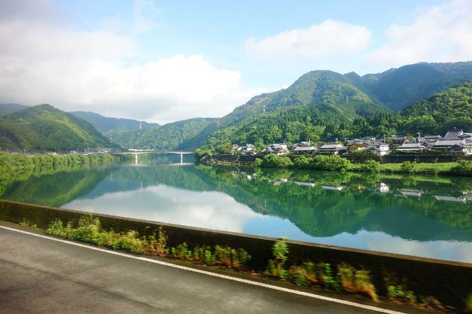 幸运的是,天气闹了一上午的脾气,终于安静了。SL人吉号沿着蜿蜒的球磨川行驶,只要是它驶过的地方,即使在河的对岸,哪怕是对行的列车中,都能看到人们热情的招手。