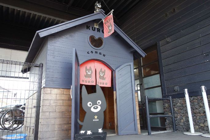 在出站口的一侧,有一间萌萌的站长室,阿苏站纪念物小黑(KURO)站在门口静静地欢迎游客们的到来,孩子们争先恐后的钻进站长室做客,整个阿苏站都沉浸在欢声笑语之中。