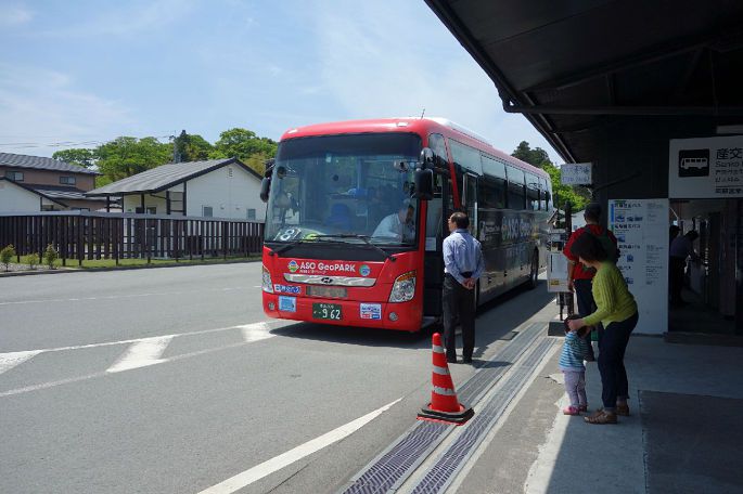 阿苏车站右侧是前往阿苏山的巴士站,在这里坐车大概30分钟就能到达。难得的好天气,存上行李箱赶紧上车。