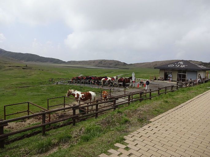 草千里之滨有湖泊,有放牧牛群,一直延伸到乌帽岳的北麓,几匹马儿正在悠闲的吃着草,山岳与碧天连成一线,简直不能再美了。天气好,火山状态稳定的时候,可以登山火山口旁边散步,看看火山的壮丽景色。我胆子小一个人不敢去,下次一定要带着朋友去看看!