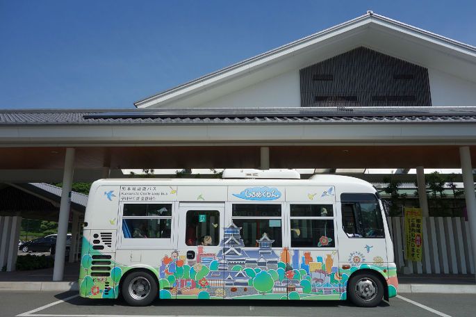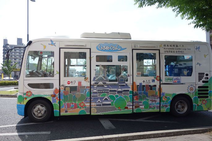 大约1个半小时车程回到熊本,把行李箱直接存放在站外的存储柜中,继续去转熊本城。从熊本站到熊本城可以乘坐熊本城环城观光巴士,单次票价150日元,大约20分钟就能到城下的巴士站。如果想转更多地方,可以购买当日随便坐环城车票,只要400日元,算下来就值多了。
