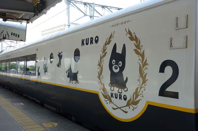 从阿苏回熊本,我选择了日本最著名的儿童列车阿苏男孩号。整个车身和内饰都能看到萌萌的kuro酱。