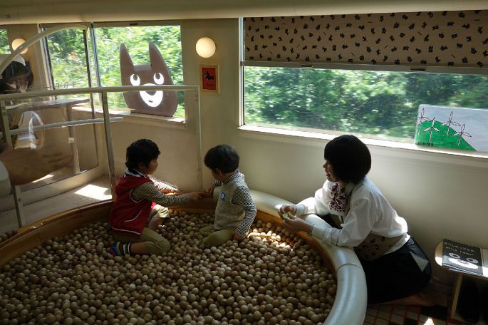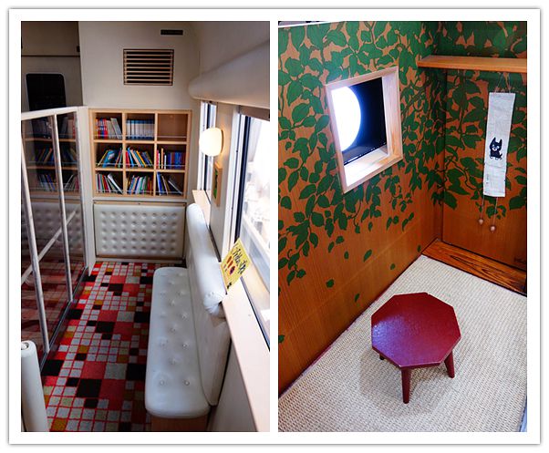 车厢内还有专供儿童玩耍的小茶室和小图书馆,孩子们进到这样的车厢里都高兴的欢呼起来。连我都有点忍不住想跟着一起玩了。这个列车太萌,简直是孩子们的天堂。