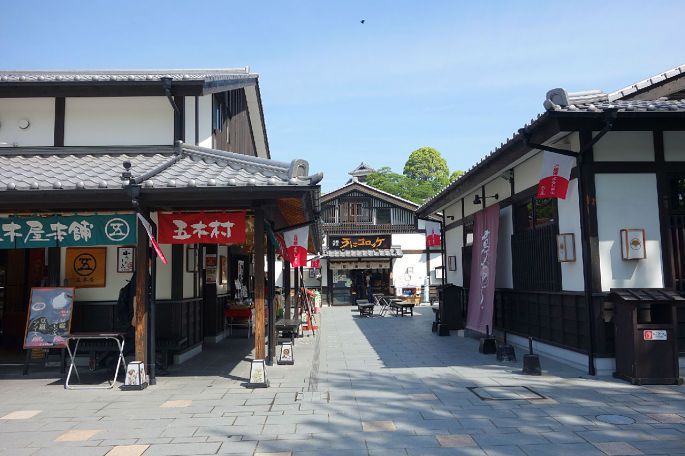 城下有一座城彩苑,是一处供游客休息和购买纪念品的购物街,建筑风格为了迎合熊本城而建造的古色古香。然而从熊本城走下山来是有一定距离的。如果时间来得及,倒是可以顺着林荫小路溜达下山,感受一下自然和历史的气息。如果觉得太累,从熊本城到城彩苑之间有免费的穿梭巴士,平均7分钟一辆。