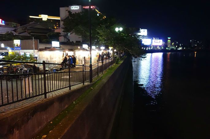 出发前查攻略,听说福冈的屋台非常有名,便一直忍着饥饿等到夜幕降临,中洲川端的河边摆起了各种小摊。5月的福冈夜晚还是有些凉意,但是丝毫挡不住前来品尝美味的上班族,每个屋台大概也就设置了10个左右的位置,但排队的人有5,6群。好不容易排到我,老板热情的招呼着,知道我来自中国还用熟练的中文跟我聊天,客人们也一边吃着美味一边和老板打趣。