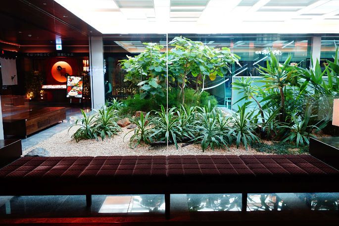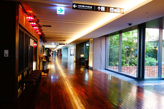 从广场往下走一层,就是美食街,和国内油腻又喧闹的商场美食街不同,这里的美食街设计成两边是店铺,中间用玻璃隔离出一片温室,种植着各种绿植,整层美食街都变得清新起来。即使不想吃饭,在这里小憩一下,也是极享受的。