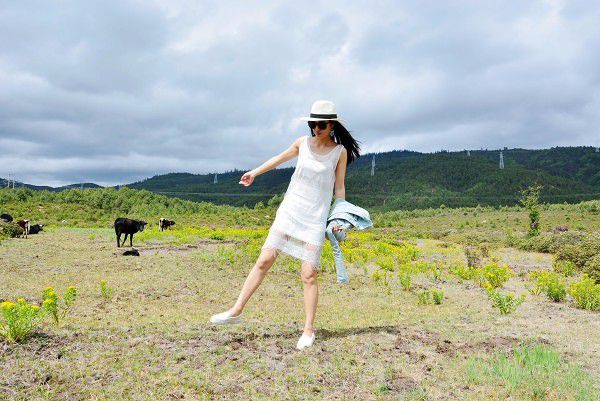 纳帕海环湖,看牛羊在草甸上安详地吃草